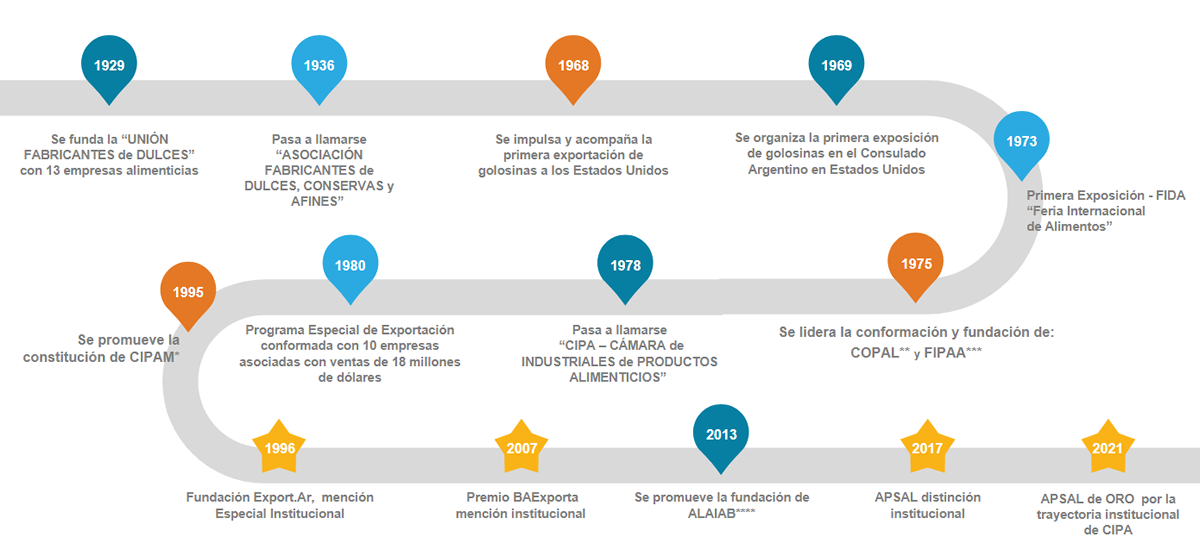 En 1975 conjuntamente con un grupo de otras cámaras del sector, lideró la constitución de la COPAL-Coordinadora de las Industrias de Productos Alimenticios con el objetivo de establecer una sede para coordinar temas de interés común a cada una de las asociaciones gremiales alimenticias. Actualmente, CIPA es una de sus principales cámaras.